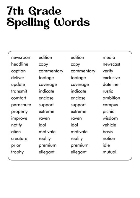 Web Find My Printable List Of 300 Words That 7Th Graders Should Know How To Spell And Use Correctly, As Well As Lots Of 7Th Grade Spelling Resources.